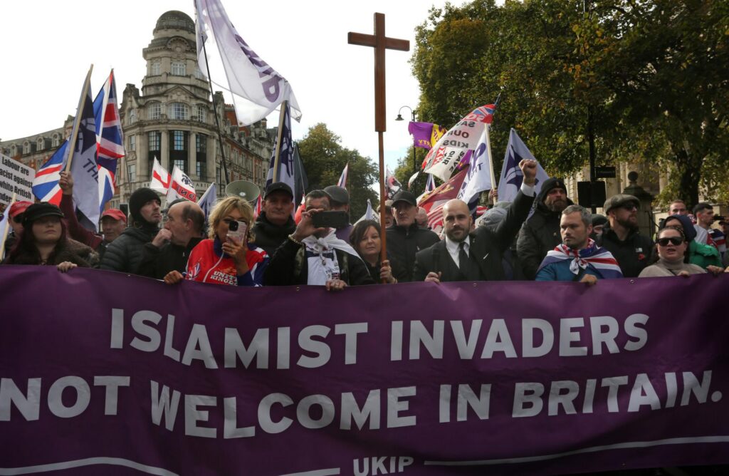 UKIP1 est un parti politique britannique d’extrême-droite. De tendance eurosceptique, il surfe dans les années 2010 sur la popularité du mouvement Brexit. Le parti populiste est alors porté par son leader Nigel Farage. Depuis le départ de ce dernier et la popularité de son nouveau parti Reform UK ainsi que l’effectivité du Brexit, UKIP perd beaucoup en influence, ne comptant plus que quelques milliers d’adhérent.es. Désormais la marge, il assume et radicalise ses positions d’extrême-droite et fait de ses principaux ennemis le communisme et le « marxisme-culturel », l’immigration et l’Islam. UKIP manipule l’image fantasmée d’une Grande-Bretagne blanche et chrétienne.